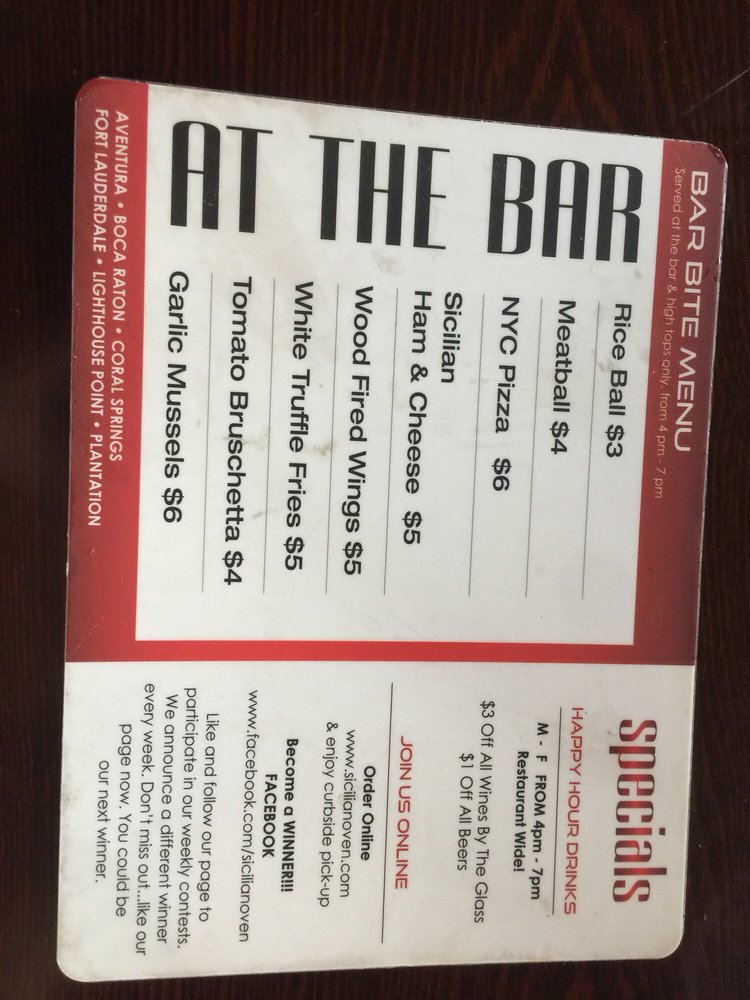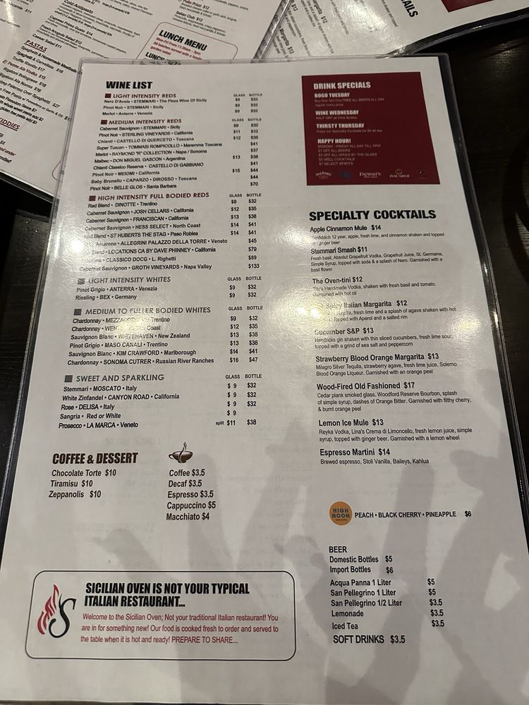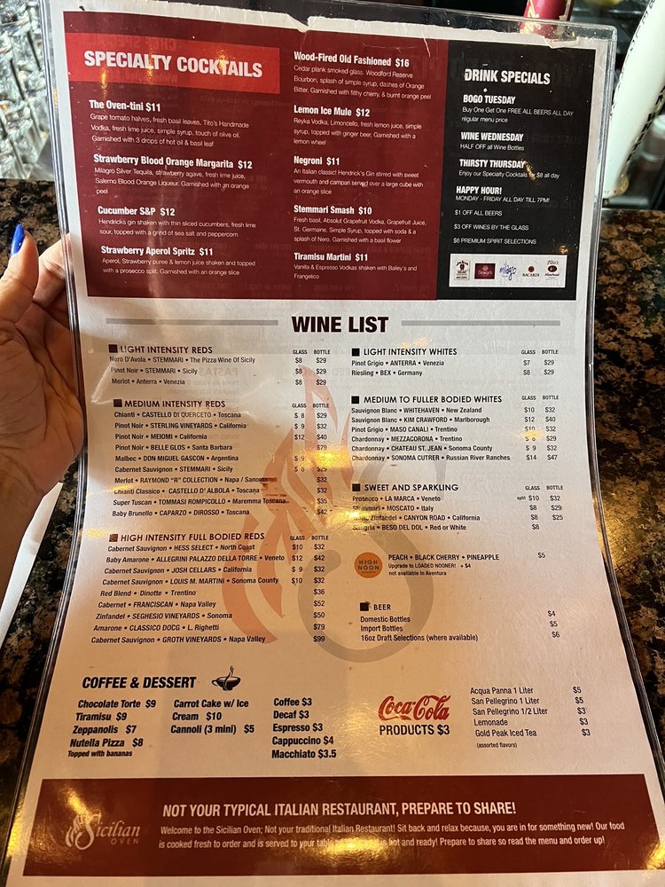 Sicilian Oven in Plantation, FL offers a diverse menu for every palate. From classic pasta dishes like Penne with Marinara Sauce to fresh salads like Arugula tossed in Italian vinaigrette, there is something for everyone. The Andrew's Selects Pizza, like the Mona Lisa with fresh mozzarella and prosciutto, showcases their unique flavors. Customers rave about the truffle fries, mussels, and gluten-free options. The atmosphere is bustling and welcoming, with friendly staff and ample seating options. Whether you're craving traditional Italian fare or looking to try something new, Sicilian Oven provides a satisfying dining experience. Overall, Sicilian Oven impresses with its flavorful dishes and inviting ambiance.